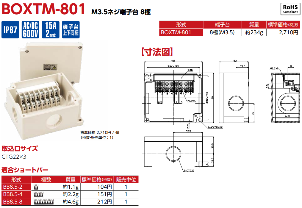 TOGI BOXTM-801 : กล่องเทอร์มินอลบล็อค 8Pole IP67 - Togi / Toyogiken - Terminal Box ![]() ![]() ![]() ![]() ![]() |